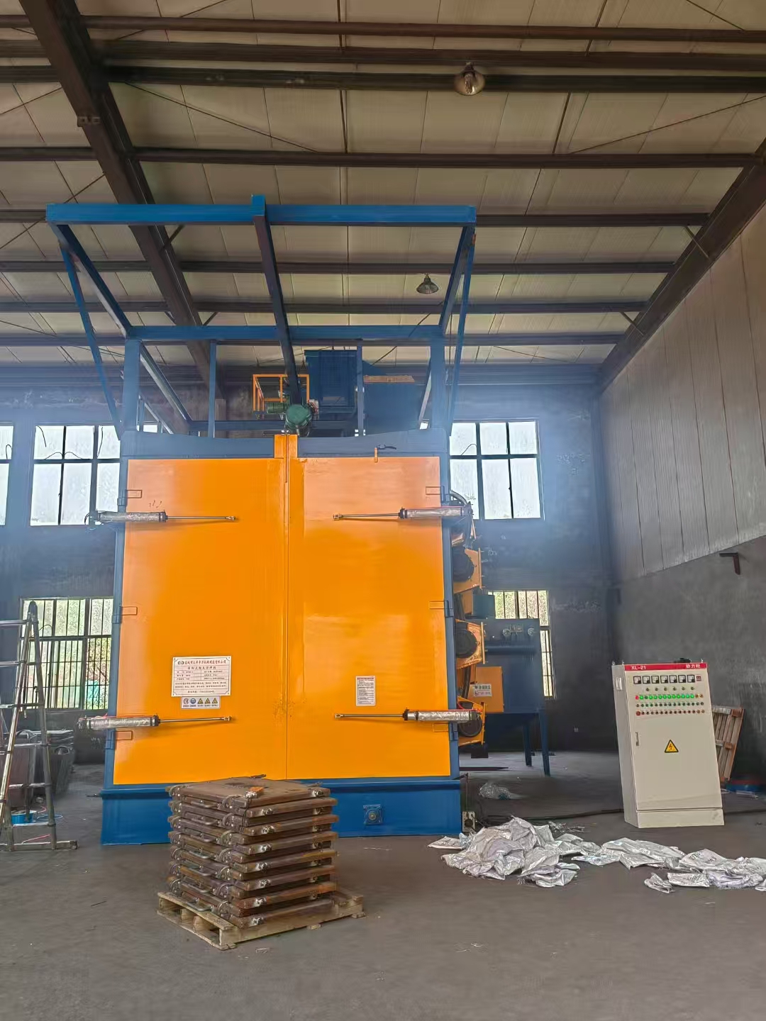 鋼結(jié)構(gòu)輥道通過式拋丸機(jī)現(xiàn)場交付25-06-04